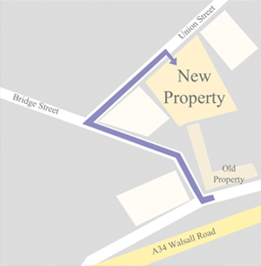 Our new address is on the road behind our old address. We are next door to the car dealership.
